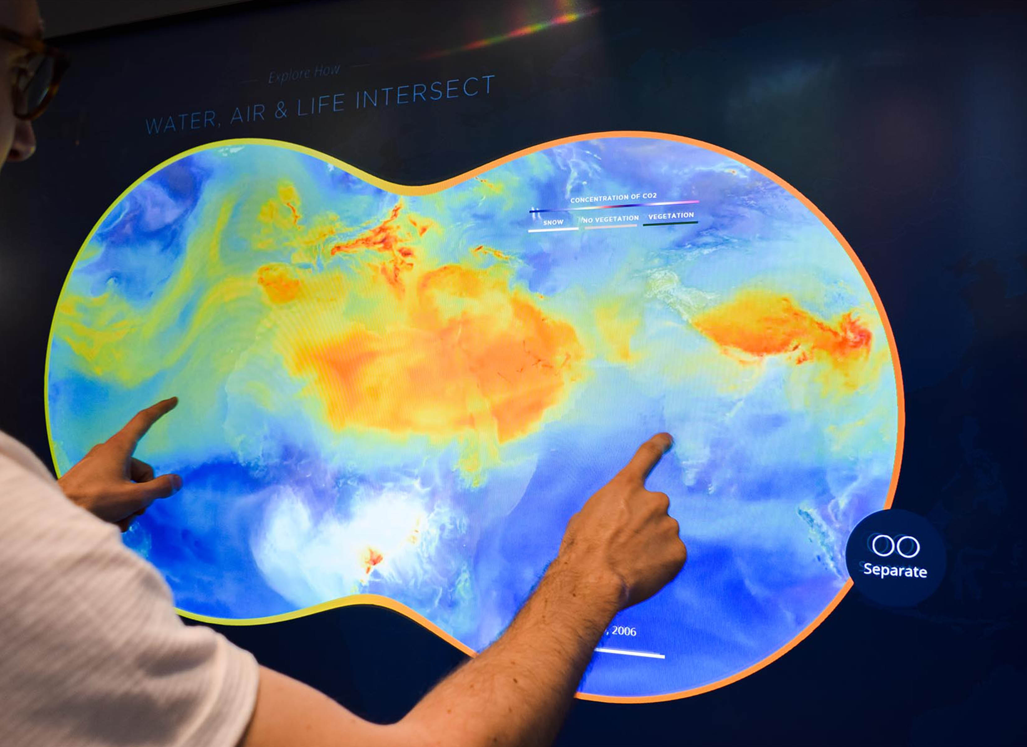 The experience takes what might otherwise be daunting scientific data and renders them as compelling and playful. By exploring and engaging with these visualizations visitors not only discover the interplay among our planet’s systems – they experience a sense of awe and a better understanding of the way our world works.