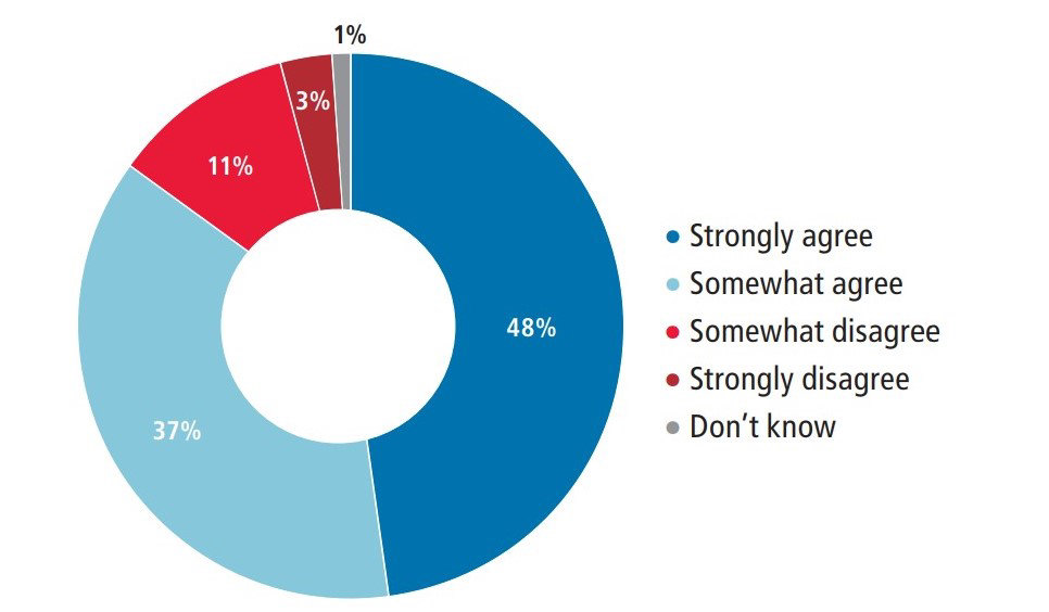 The connection presented in the previous quote between workforce diversity and innovation is essential, and represents a central concept in our discussion. As we continue to explore the scope of this connection, it is probably relevant to be mindful that innovation touches upon nearly all aspects of museum work. Museum innovation is defined as “the new or enhanced processes, products, or business models by which museums can effectively achieve their social and cultural mission” (Eid, 2016). The graph below shows that 85% of the Forbes survey respondents agreed or strongly agreed that “a diverse and inclusive workforce is crucial to encouraging different perspectives and ideas that drive innovation.”