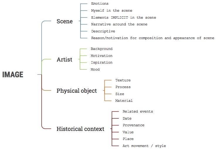 In the present study, we focus on uncovering information requirements—the additional content that accompanies single paintings. We choose to derive insights from people’s curiosities that emerge when they encounter an artwork, following the inquiry technique developed for visible thinking strategies.