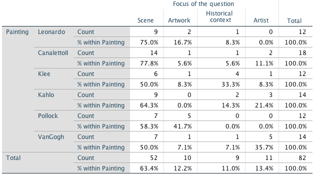 Figure 4: frequency of questions’ content by painting