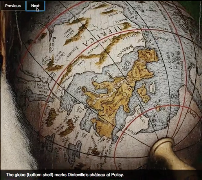 This interface provides a good balance between a directed experience and allowing the user to discover more on their own; the story navigation moves the viewer to focus on a particular feature of the image, but the user is free to take over control and explore other areas of the image if they wish.