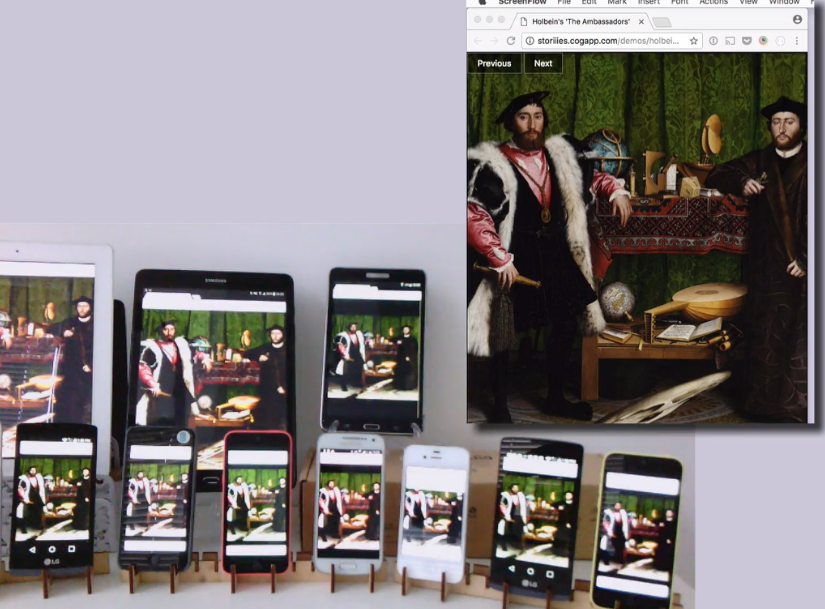 All of the examples above can be applied to multiple different types of content. In all of the screenshots and videos above we have used a single example, based on a portrait by Hans Holbein the Younger. However, when you consider the wider idea of a story illustrated by one or more images, there are many other possibilities for using museum content in this way. For example, we hope to commission the following in time for Museums and the Web 2018, and to display these on the demo site (http://storiiies.cogapp.com/):