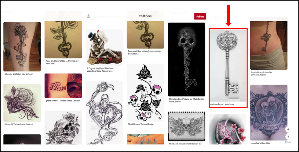Interestingly, the majority of boards the key appears on are on boards about Tattoos. We have since learned that keys are a popular tattoo design.