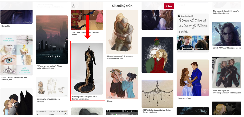 Items from our costume collection are among our most pinned objects, mostly on boards related to fashion. A 1934 dress by Travis Banton received traffic from a Pinterest board about the fantasy novel series Throne of Glass. This is the only example we have seen so far of a topic related to teen novels.