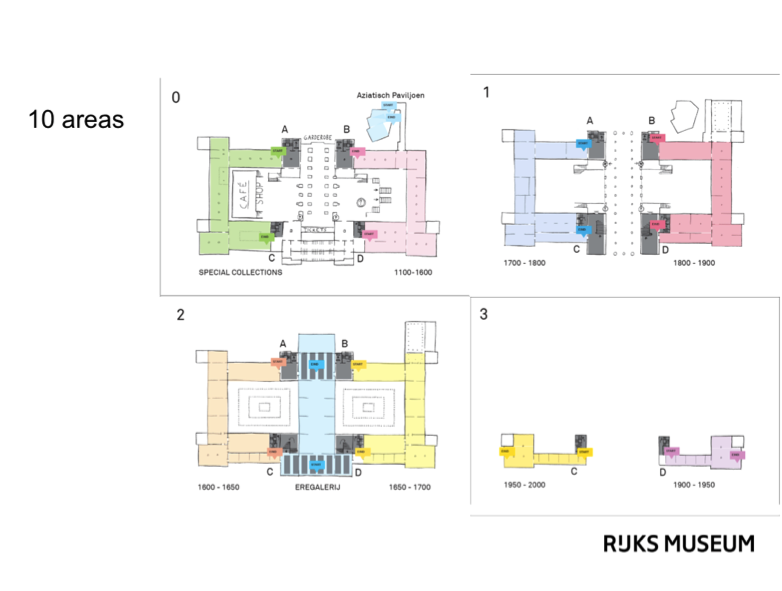 - four stairwells guide you to the starting points of the ten chronological areas of the Rijksmuseum
