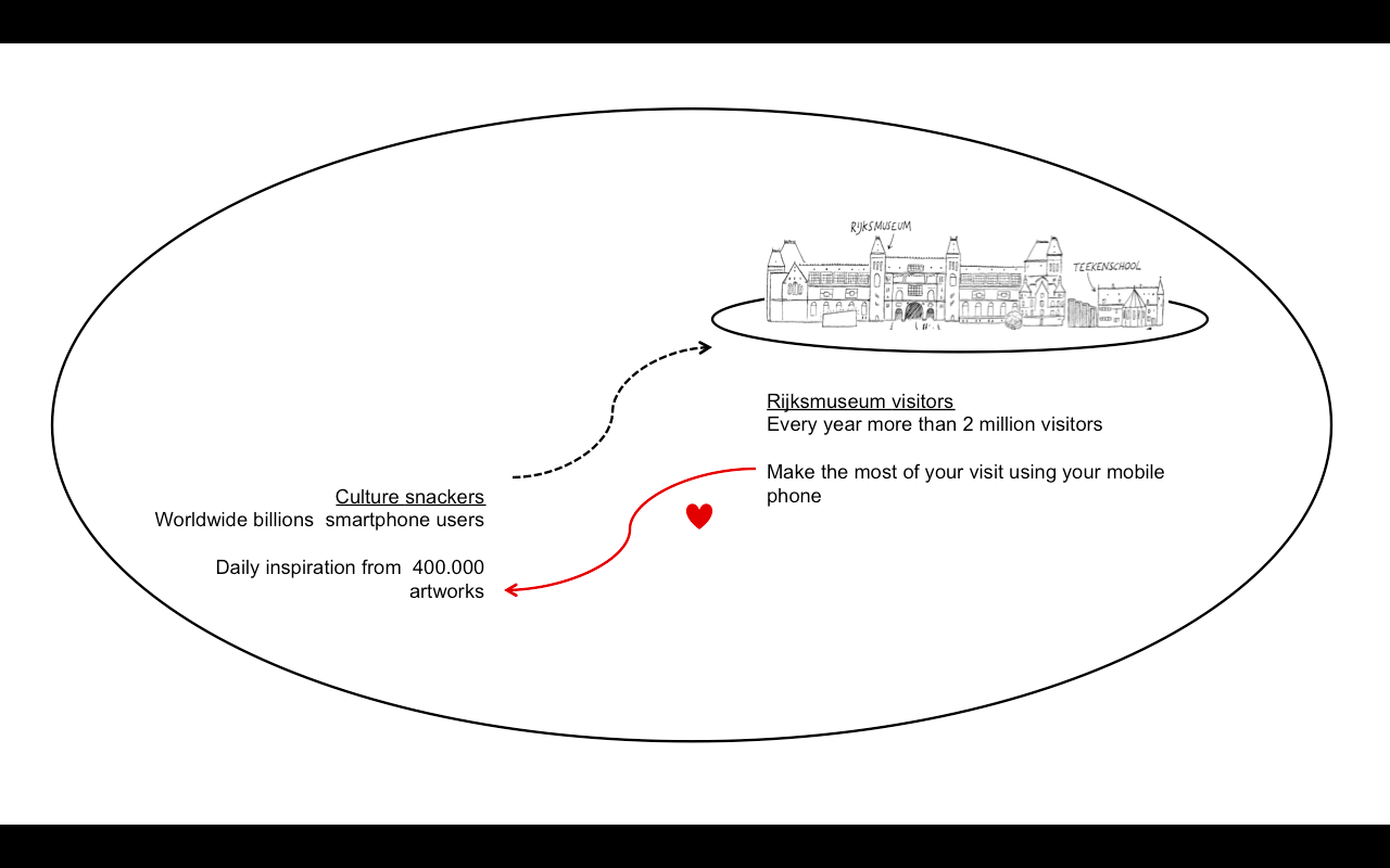 The idea—to enjoy the collection any time and anywhere, via your mobile phone. For example, on the train or on your sofa at home with Rijksstudio, or at the museum with multimedia tours.