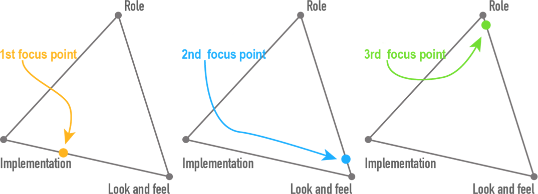 The prototype was developed in six iterations, two for each of the three focus areas described above, each consisting of development and user testing: